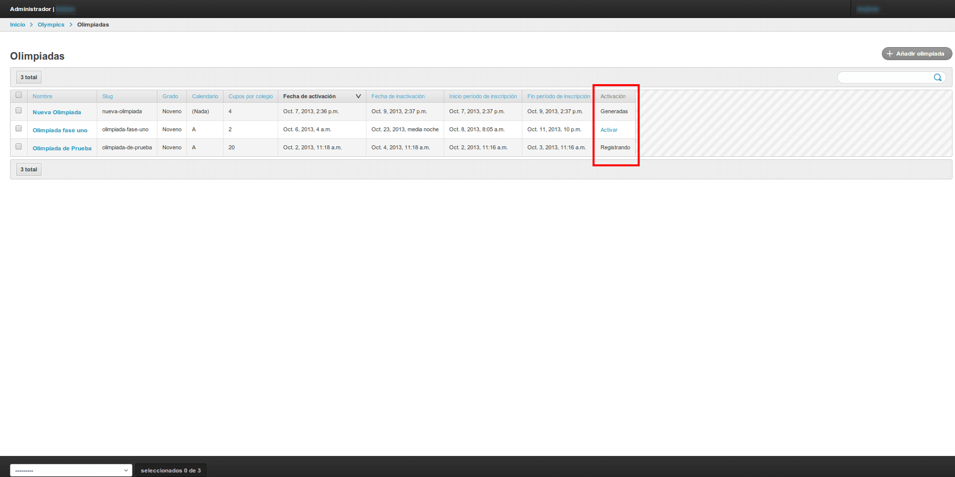Como se mencionó anteriormente, la fechas de activación de la olimpiada es un estimado, por tal razón, es necesario que el super administrador active manualmente la olimpiada.