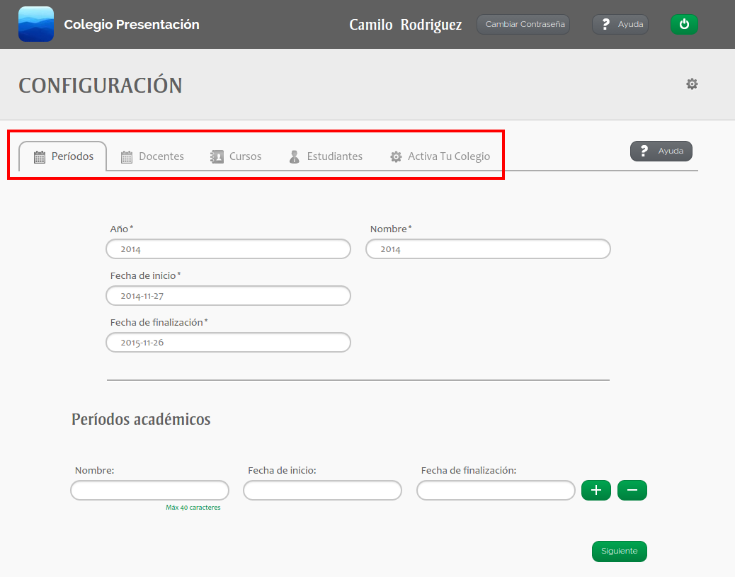 Al terminar el año, se le presentará al usuario una nueva interfaz, una para el usuario administrador de colegio y otra para los usuarios profesores, estudiantes y padres de familia.
